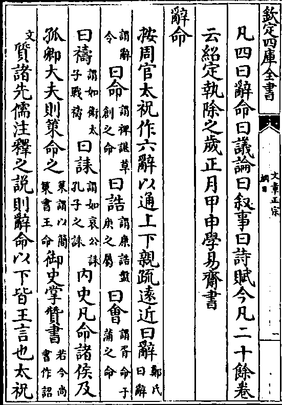 谓辞令)曰命(谓裨谌草创之命)曰诰(谓康诰盘庚之属)曰会(谓胥命于蒲之命)