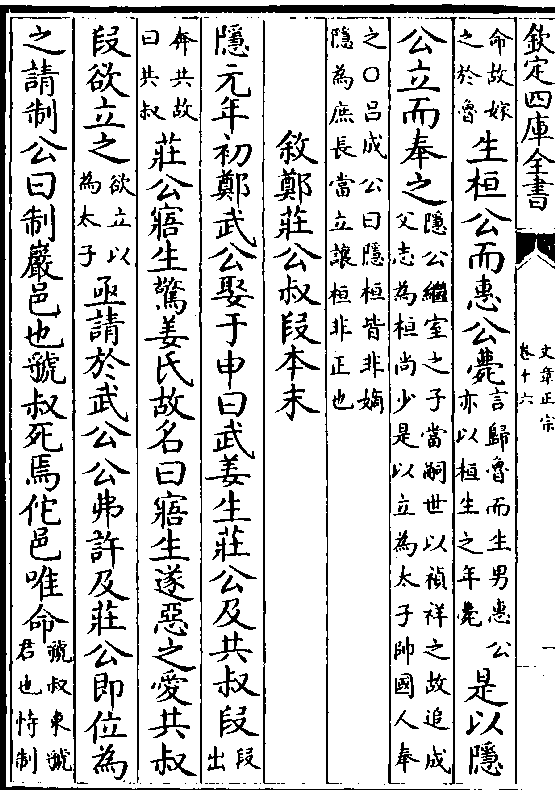 隐元年初郑武公娶于申曰武姜生庄公及共叔段(段出