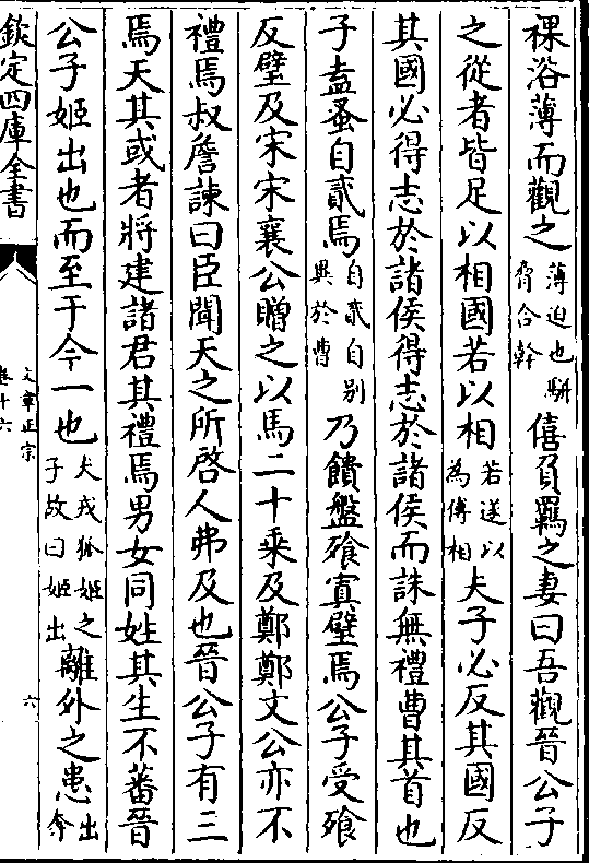祼浴薄而观之僖负羁之妻曰吾观晋公子