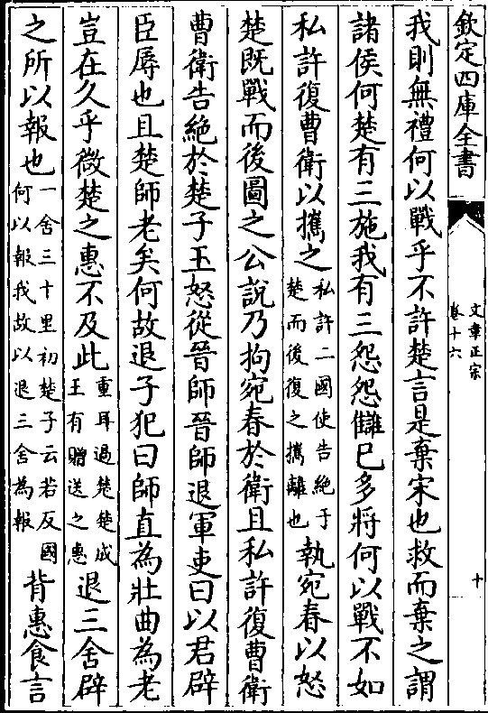 楚治兵遇于中原其辟君三舍若不获命其左执鞭弭