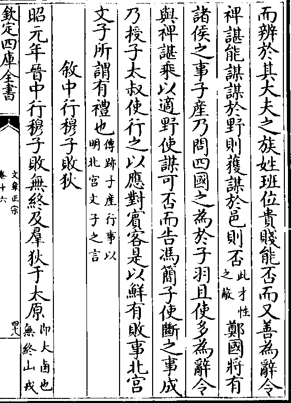 乃授子太叔使行之以应对宾客是以鲜有败事北宫