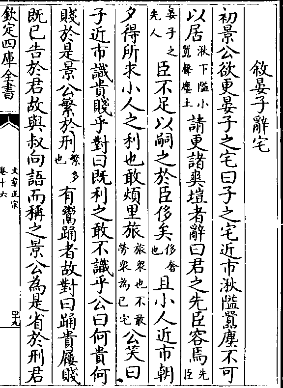 初景公欲更晏子之宅曰子之宅近市湫隘嚣尘不可