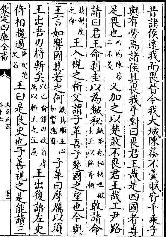 与有劳焉诸侯其畏我乎对曰畏君王哉是四国者专