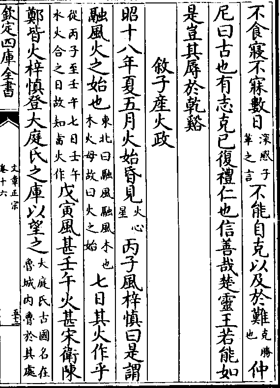 昭十八年夏五月火始昏见丙子风梓慎曰是谓