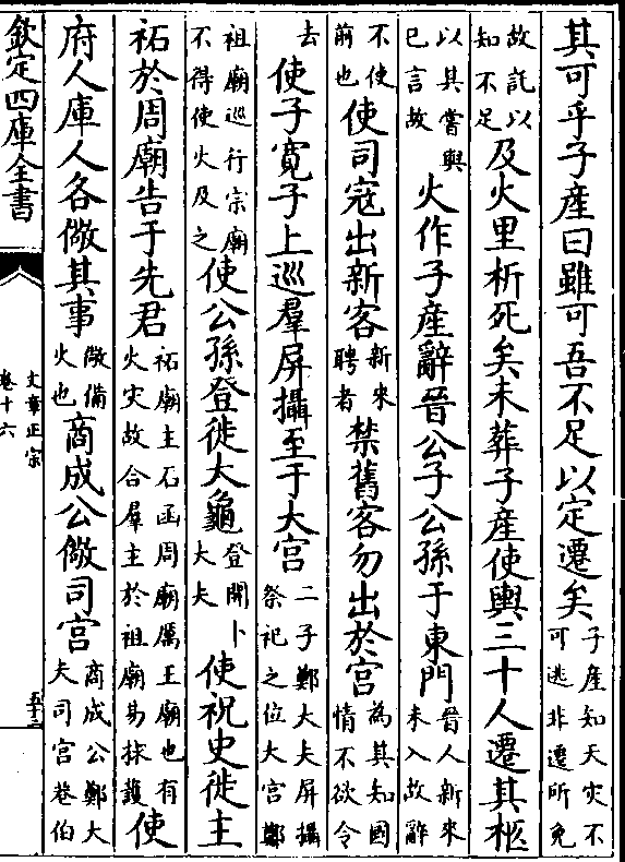 不使前也)使司寇出新客禁旧客勿出于宫使子宽子上巡群屏摄至于大宫