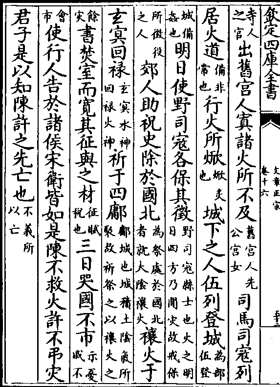 寺人之官)出旧宫人寘诸火所不及(旧宫人先公宫女)司马司寇列