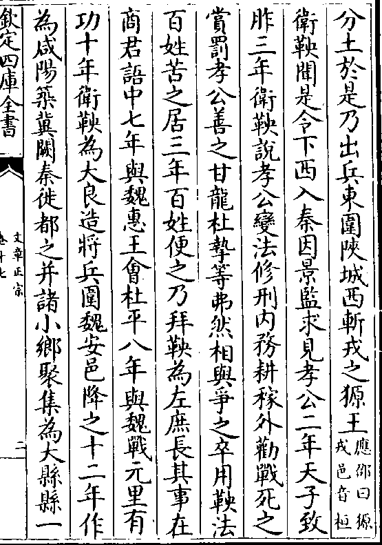 胙三年卫鞅说孝公变法修刑内务耕稼外劝战死之