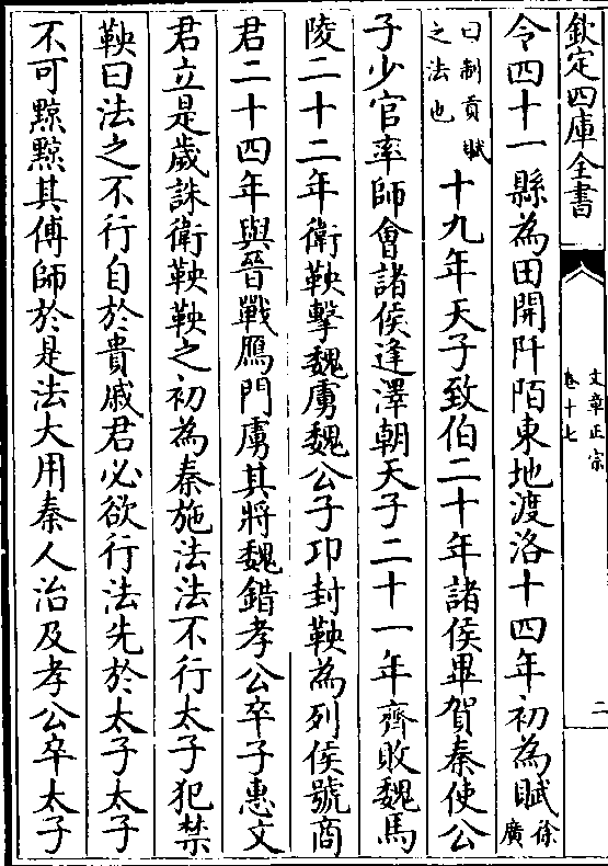 鞅曰法之不行自于贵戚君必欲行法先于太子太子