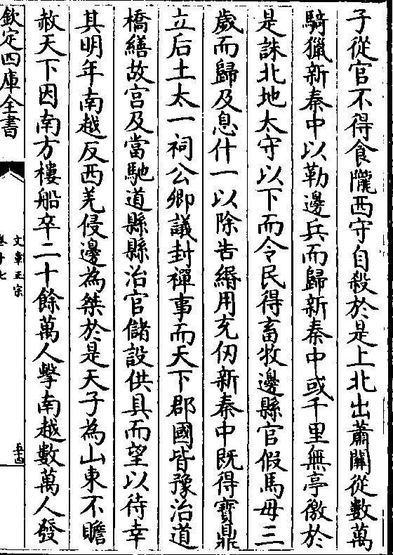 子从官不得食陇西守自杀于是上北出萧关从数万