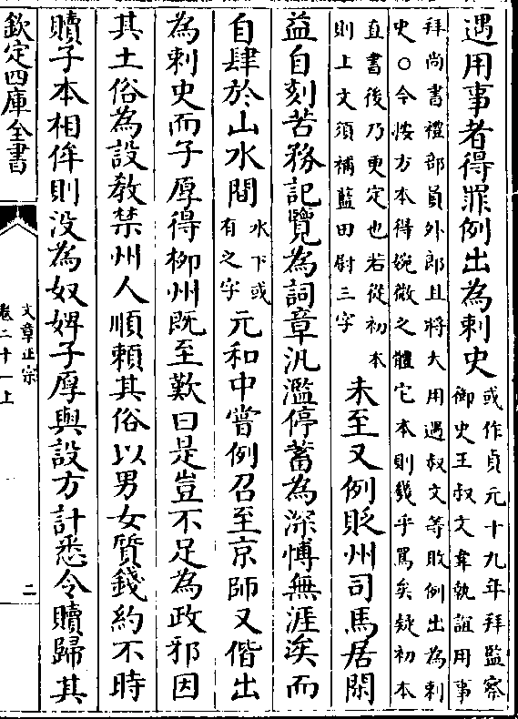 遇用事者得罪例出为刺史(或作贞元十九年拜监察御史王叔文韦执谊用事