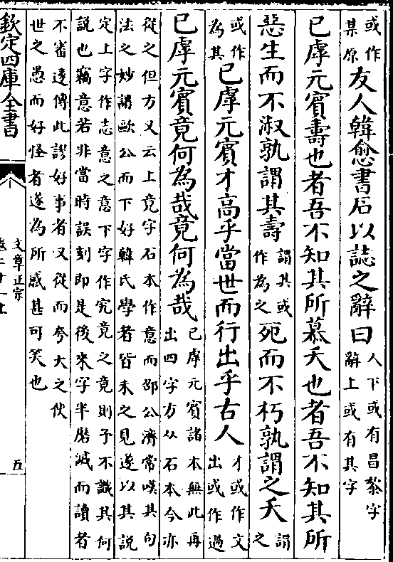 或作某原)友人韩愈书石以志之辞曰(人下或有昌黎字辞上或有其字)