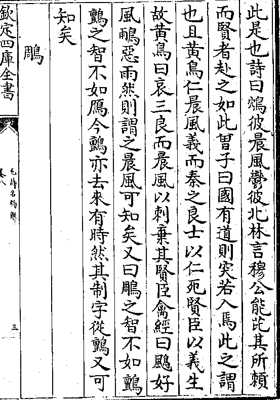 故黄鸟曰哀三良而晨风以刺弃其贤臣禽经曰□好