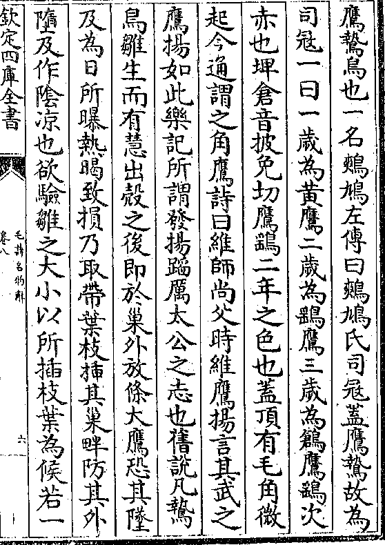 司寇一曰一岁为黄鹰二岁为鹞鹰三岁为鸧鹰鹞次