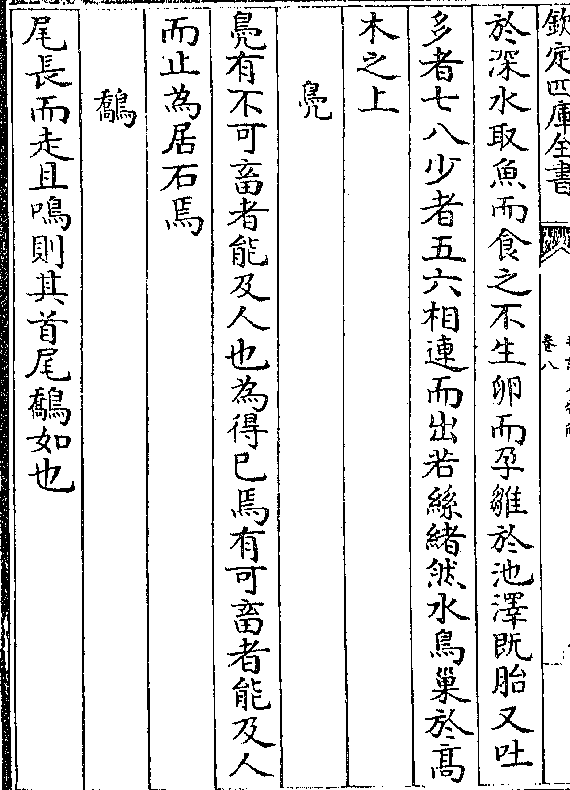 于深水取鱼而食之不生卵而孕雏于池泽既胎又吐