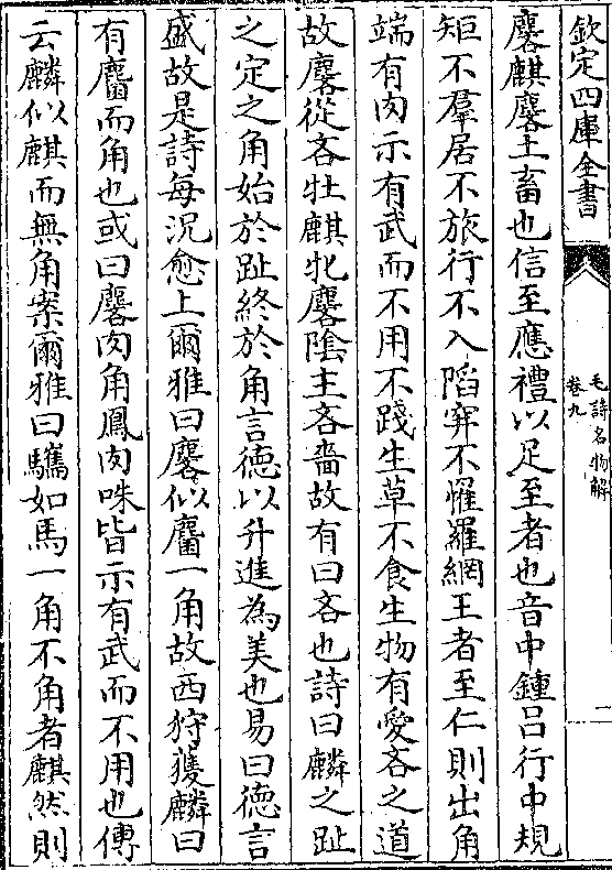 麟从麒省不角故也或曰诗序以为皆信厚如麟趾之时