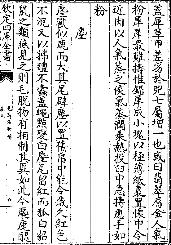 麈兽似鹿而大其尾辟尘以置茜帛中能令岁久红色