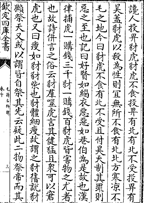 律捕虎一购钱三千豺一购钱百豺虎皆害物之尤者