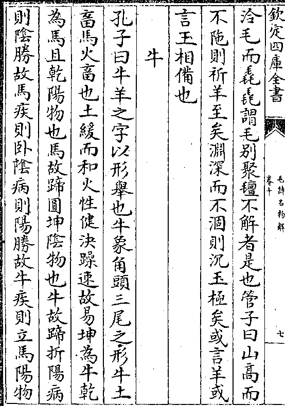 孔子曰牛羊之字以形举也牛象角头三尾之形牛土