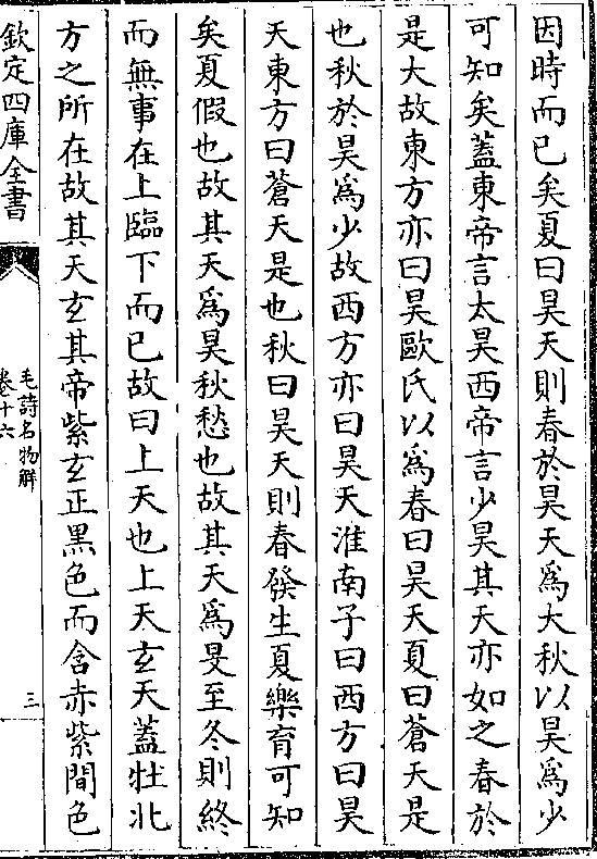 曰昊天秋曰旻天冬曰上天东木敷则天远而苍西金