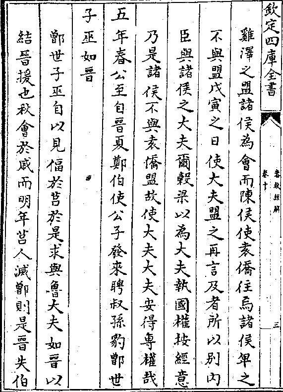 盟于鸡泽五年使大夫来聘又会诸侯于戚又会诸