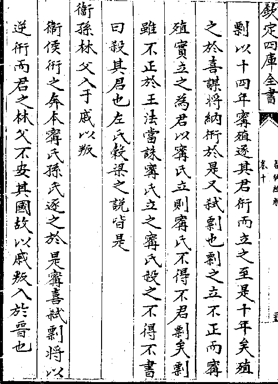 与喜皆弑君者春秋不罪鱄而罪卫侯盖以鱄之意