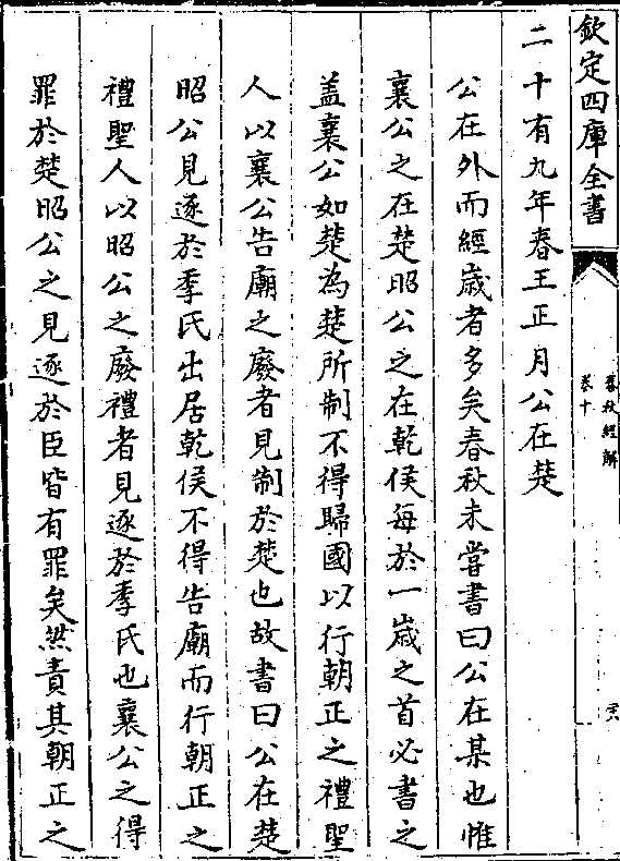 二十有九年春王正月公在楚