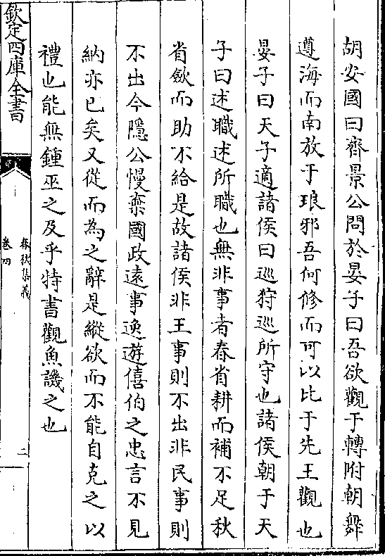 胡安国曰齐景公问于晏子曰吾欲观于转附朝舞